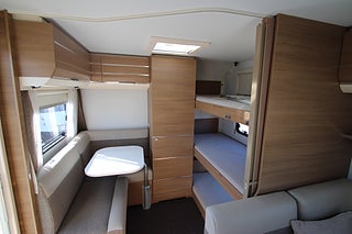 Nu har vi fått in en otroligt fin och välplanerad barnkammarvagn med tre våningssäng. Alde vattenburen värme, Mover ifrån AL-KO, Tv, förtält, Cykelställ mm. En fullt färdig vagn som bara väntar på nya äventyr.