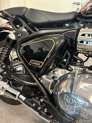 Den mycket omtyckta Royal Enfield 650 twin motorn har kalibrerats för en graciös och lugn körkänsla men med oöverträffad kraft, om det skulle behövas. Ett hantverk med alla de välbekanta dragen hos en Classic.