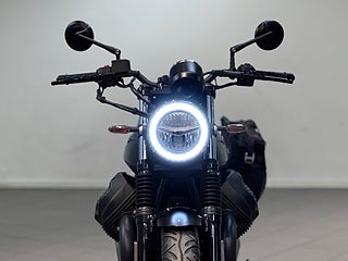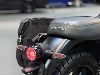 Night Pack levererar utöver det vanliga utökad LED Strålkastare till full LED, lägre placerad strålkastare och instrumentering, ny bakskärm med integrerad bromsljus & reggplåt och dedikerat sadeldesign med Moto Guzzi logo.