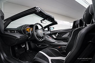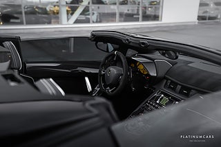 Utrustning: 1 av 500, ARMYTRIX sportavgassystem, Exteriört matt kolfiberpaket, Kolfiberpaket interiört i glossy kolfiber, Branding paket, Liftning system, Air vents i kolfiber, Avtagbara targa luckor, Motorkåpa i kolfiber, Spoiler bak i kolfiber, Sportratt i alcantara med F1-paddlar, Instrumentkåpa i kolfiber, Mittkonsol i kolfiber, Kolfibergolv interiört, Dörrar i kolfiber, Aventador instegslister i kolfiber, Skalstolar i kolfiber, SV logo samt Lamborghini logo inpräglat i säten, MMI Navigation, Radio, Bluetooth, CD-spelare, Mugghållare, Backkamera, 7-stegad ISR-låda, Strada / Sport / Corsa, Keyless start, Start/stopp-funktion, ACC/Klima, Elhissar, Färddator, Centrallås, Röda bromsok, Keramiska bromsar, 20 /21 tums svarta Lamborghini fälgar i svart högglans, ABS, Antispinn/Antisladd, Larm, mm.
