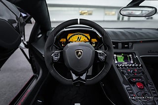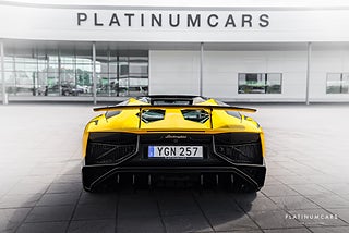 Nu i lager en grym Lamborghini Aventador LP 750-4 SV Roadster limiterad till endast 500 i världen! En unik samlarbil för den som vill vara värst! Bilen kommer med en fantastik fin spec, carbon paket in samt utvändigt. Den är folierad i Gul 3M och har färgen Bianco Isis undertill, interiören består av svart alcantara med vita inredningsdetaljer/stitching samt endast 800mil! På sitter ett Armytrix sportavgassystem catless som levererar ett ljud som bara är att drömma för! Första ägaren på denna bil var Yannick Carrasco från Atletico Madrid!