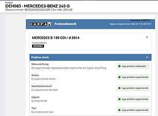 CARFAX-rapporten hjälper dig att spara pengar genom ett säkrare köp. Den hjälper dig att upptäcka fusk med mätarställningen, besiktningshistorik, misstänkta importer, dolda fel och mycket annat.