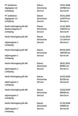 Fordonets historik - 20 händelser finns registrerade