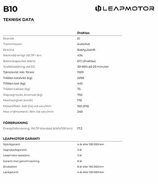 Leapmotor B10 ProMax Design Räckvidd WLTP 434km