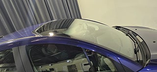 Bilen är utrustad med ett imponerande halvpanoramatak i glas som sträcker sig nästan hela vägen bak, vilket ger en ljus och luftig kupékänsla.