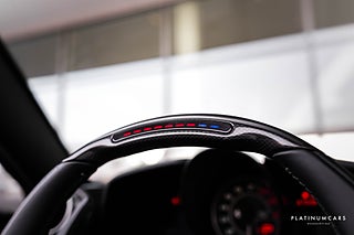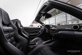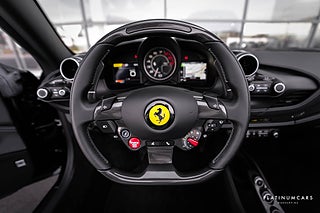 Utrustning: Suspension lifter, Carbon fibre front spoiler, Front part of front bumper in carbon fibre, Carbon fibre side air splitter, Carbon fibre rear boot trim, Rear diffuser in carbon fibre, Front air vents in carbon fibre, Carbon fibre underdoor cover, Exterior sill kick in carbon, Carbon fibre hub caps, Carbon fibre inner door handle, Carbon fibre central bridge, Dash inserts in carbon fibre, Carbon fibre driver zone + LEDs, Apple CarPlay, Passenger display, Daytona racing seats - L size, Racing seat lifter, Cavallino stitched on headrest, Coloured special stitching, Adaptive frontlight system, Advanced front driving camera, Back radar, Parking camera, Front and rear parking sensors, Heat insulating windscreen, Scuderia Ferrari shields, Sport tailpipe tips, Electrochromic rear-view mirror, Red brake calipers, Wheel stud bolts in titanium, 20” forged diamond wheels, ABS, Antispinn/Antisladd, Larm, mm.