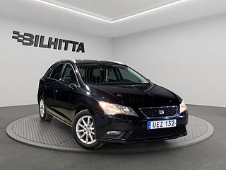 En snygg och välvårdad SEAT Leon ST i elegant svart färg, utrustad med en bränslesnål och driftsäker bensinmotor på 110 hästkrafter. Den här bilen kombinerar sportig känsla med praktisk funktion – perfekt både för vardagskörning och längre resor.