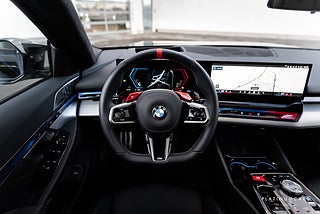 Nu i lager en riktigt grym svensksåld (MOMS/VAT), BMW M5 Touring 4.4 V8 Plug-in-Hybrid Steptronic 727hk 2025 i färgen Black Sapphire metallic med Merino svart läderinteriör och endast 1000mil!