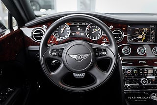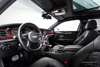 Utrustning: Mulsanne-paket, Mulliner-paket, Utökat läderpaket, Taklucka, Multifunktionsratt i läder med F1-paddlar, Elektrisk inställning av ratt, Navigation, Bentley Naim ljudsystem, Digital TV, Bluetooth, USB/Ipod-anslutningar, Radio, DAB radio, Fjärr för media, Media m.m i baksätet, Elektriska justerbara stolar fram och bak med värme och ventilation samt massage, Bentley loggan broderat i stolar, Solskyddsgardiner för dörrar bak, 4-zons klima, Picknick-bord i valnöt, Dekorinlägg i mörk valnöt, Takhimmel i svart läder, Analoga Bentley klockur, 8-växlad automatlåda, Körlägesväljare för bästa körupplevelse, Drive dynamics, Farthållare, Backkamera med PDC fram & bak, Keyless start, Regnsensor, Kromade lister runt fönster, Elektrisk baklucka, Mörkgråa bromsok, 21” aluminiumfälgar, ABS, Antispinn/Antisladd, Larm, mm.