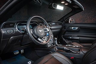 Med denna Mustang GT får du klassisk amerikansk V8-prestanda kombinerat med modern teknik och hög komfort. Den starka 5.0-liters V8:an levererar ett fantastiskt ljud och rejäl kraft, samtidigt som den 10-stegade automatlådan gör bilen både smidig i vardagen och brutal när du vill köra mer aktivt. Cabriolet-utförandet ger dessutom maximal körglädje under sommarhalvåret.