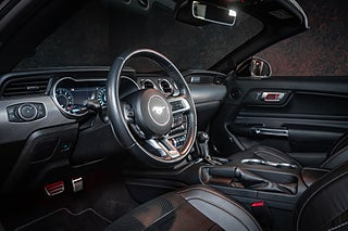 Med denna Mustang GT får du klassisk amerikansk V8-prestanda kombinerat med modern teknik och hög komfort. Den starka 5.0-liters V8:an levererar ett fantastiskt ljud och rejäl kraft, samtidigt som den 10-stegade automatlådan gör bilen både smidig i vardagen och brutal när du vill köra mer aktivt. Cabriolet-utförandet ger dessutom maximal körglädje under sommarhalvåret.