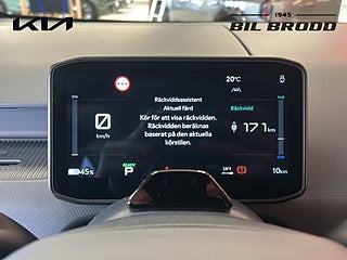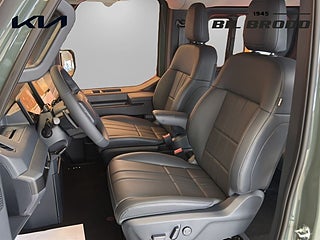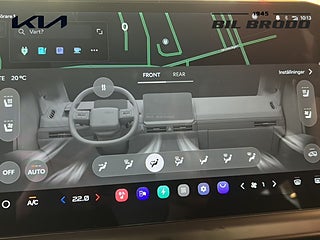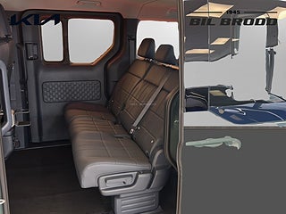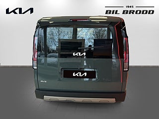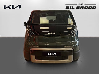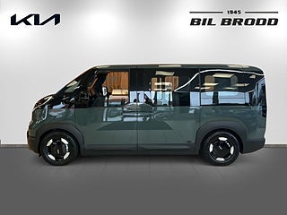 UTRUSTNING: 16\" aluminiumfälg 1x7.5\" + 1x12.9\" skärmar inklusive navigationssystem & DAB-radio 10, 5 kW 3-fasladdare (Ombordladdare) ACC, 1-zons automatisk klimatanläggning Apple CarPlay och Android Auto, trådlös Armstöd förarstol, höger sida. Autobroms fotgängare-, (FCA 1.5) Autobroms vid backning, bak (PCA) Automatisk avbländbar innerbackspegel Backkamera med dynamisk projicering Batteriuppvärmningssystem för optimal laddning vid låga temperaturer inkl. förvärmning inför snabbladdning. Blinkers fram, LED Dubbla manuella skjutdörrar Däckreparationssats Däcktrycksövervakning Dödvinkelvarning med bild i digitala klustret Elfönsterhissar fram Elinställbara, elinfällbara & uppvärmbara sidobackspeglar med blinkers Elmanövrerad parkeringsbroms Elmanövrerad förare- & passagerarstol fram inkl. elsvankstöd Eluppvärmda framstolar och ytterplatser 2:a raden Energibesparande värmepumpsystem för effektiv uppvärmning/nedkylning av kupén Exteriöra designdetaljer i plast Farthållare, adaptiv med stop & go Filövervakningssystem, aktivt Förar- och passagerarstol fram ställbara i höjdled Förvaringsfack i golvet fram Highway Driving Assist Insynsskydd ISOFIX, ytterplatser andra raden Kia App (7-års uppkoppling med mobilen) Klädsel, tyg/konstläder Manuell inställning av ratt i djupled & höjdled Mode 3 laddkabel med Typ 2 kontakt (3-fas) Nyckelfritt system med startknapp Parkeringssensorer fram, sida och bak LED-bakljus LED-reflektorstrålkastare fram Ratt, läderklädd (konstläder) och eluppvärmd Rattpaddlar för nivå av bromsenergiåtervinning Regnsensor Ryggstöd bak, fäll-/delbart 60/40 Surround View Monitor, kamera med 360°-vy Trådlös mobilladdare - Qi-std. Trötthetsvarnare (Driver Attention Warning) USB C - ladduttag Vehicle to Load (V2L) Möjliggör bilen som en \"mobil strömkälla (mobil powerbank)\" Vätskekylt batteri som tillåter upprepade snabbladdningar (DC-laddning) Digital Key 2.0 Dubbla elmanövrerade skjutdörrar Elmanövrerad baklucka Klädsel, konstläder (Mörkblå) Ventilerade stolar fram Öppningsbara sidorutor 2:a raden (skjutbara)