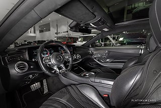 Nu i lager en brutal Mercedes S63 4MATIC+ Coupé BRABUS 700 i färgen Manufaktur anthracitblå metallic med exklusiv svart exklusiv läderinteriör och endast 10700mil!