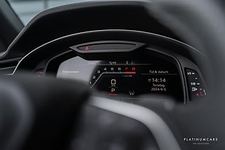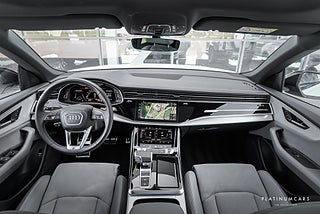Utrustning: Denna Audi S Q8 är utrustad med 4-corner luftfjädring, Panoramaglastak, Sportmultifunktionsratt i läder, Audi virtual cockpit, MMI navigation med MMI touch, Audi connect, Audi music interface, Phone apps, Bluetooth, USB/Ipod-anslutningar, Audi sound system, DAB radio, eCall & bCall, Miljö-/konturbelysning, Elektriska justerbara S-sportstolar fram med värme, Dekorinlägg i matt borstad alu, Climatronic, Belysta instegslister, 8-växlad automatlåda, Fyrhjulsdrift, Drive select, Adaptiv farthållare, Köassistent, Filhållningsassistent plus, Audi pre sense, Vägmärkesigenkänning, Backkamera med parkeringshjälp samt parkeringsassistent, HD Matrix LED-strålkastare, LED-bakljus, Komfortnyckel, Keyless go, Privacy glas bak, Svarta lister runt fönster, Svarta ytterspeglar, Däcktryckskontroll, 22” Audi sport fälgar, ABS, Antispinn/Antisladd, Larm, mm,
