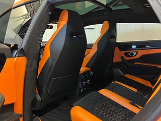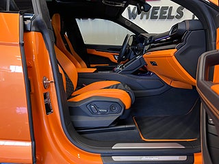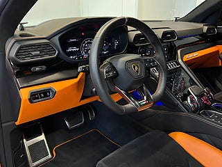 Hantverk och toppmodern teknik möts i den lyxiga interiören. För första gången på Urus matchar en dedikerad tvåfärgad Alcantara med split ventilation till den yttre färgen, Arancio Leonis-detaljer uttrycker en elegant energi, med standard Q-citura-sömmar i den traditionella hexagonformen samt dedikerade broderier, det lilla invändiga Carbon-paketet och svartanodiserade aluminiuminlägg. Urus Pearl Capsule representerar det högsta skräddarsydda hantverket, en Urus som uttryckligen är skräddarsydd för förarens personlighet och unika vision.