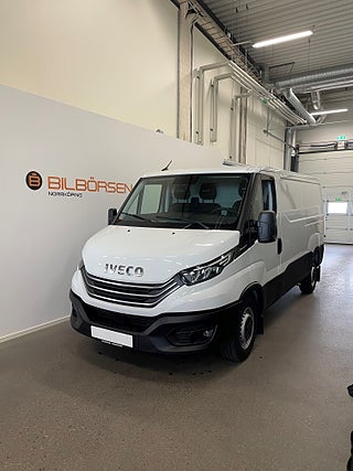 FINNS HEMMA I LAGER FÖR OMGÅENDE LEVERANS!! Smidig modell(inv.mått skåp längd 3, 13 m) av nya Iveco Daily - 9m3 skåpbil med Bio-/naturgasdrift+bensin(skatt endast ca 2500:-/år) och Hi-Matic - en 8-stegad modern riktig automatväxellåda från ledande ZF som ger optimal ekonomi, driftsäkerhet och minimalt underhåll. Ord.pris ca 552000:- exkl. moms nu grundpris 490000:- exkl.moms*. Ny bil med fabriksgaranti 3 år/max 20000 mil. Smidig kampanjbil(inv.mått skåp längd 3, 13 m) av nya Iveco Daily. Premiumpaket - näst intill fullutrustad lastbil. MYIVECO Infotainment 7" touchskärm med Apple Car Play och Android auto och DAB-radio med möjlighet till navigation mm inkl. Bluetooth handsfree, usb-ingång mm. USB-uttag. 2 st 12-voltsuttag. Alexa röststyrning. Backkamera. Acc/Klimatanläggning. Elektrisk handbroms. Ljus- och regnsensor. Komfortmellanvägg. Stolsvärme. Dragvikt max 3500 kg. Sportläderratt med multifunktion och 4-vägs justering. Farthållare. Färddator. Fjädrande komfortstol förare i memoryfoam med värme, viktjustering mm. Delvis uppvärmd framruta. Full LED strålkastare(hel-, halv- och positionsljus). Dimljus med kurvljus. Telematicsbox. TFT Färgdisplay/instrumentoptik+High end dashboard (uppgr. instrumentpanel). Stoppade nackstöd i textil. Centrallås med fjärrnyckel. Elhissar. Eljusterbara speglar m värme. Elektroniskt servo med cityläge och marknadens bästa svängradie. ABS / ASR / ESP. Airbag förare och bältes-sträckare. Stänkskydd fram och bak. Passagerarsoffa med nedfällbart bord och förvaring. Komfortdisplay med serviceinformation. Instrumentbord i komfortversion med div stuvfack, mm. Inklädnad i skåp(väggar+dörrar i komposit). Helt plyfagolv i skåp utan skarvar, med infällda lastöglor och hjulhusskydd. *Grundpris. Tillkommer leveransservice+reg. och ev dragkrok.-------För snabb leverans!!!-------Med reservation för skrivfel. Kontakta Carl Busch på carl.busch@bilborsen.com