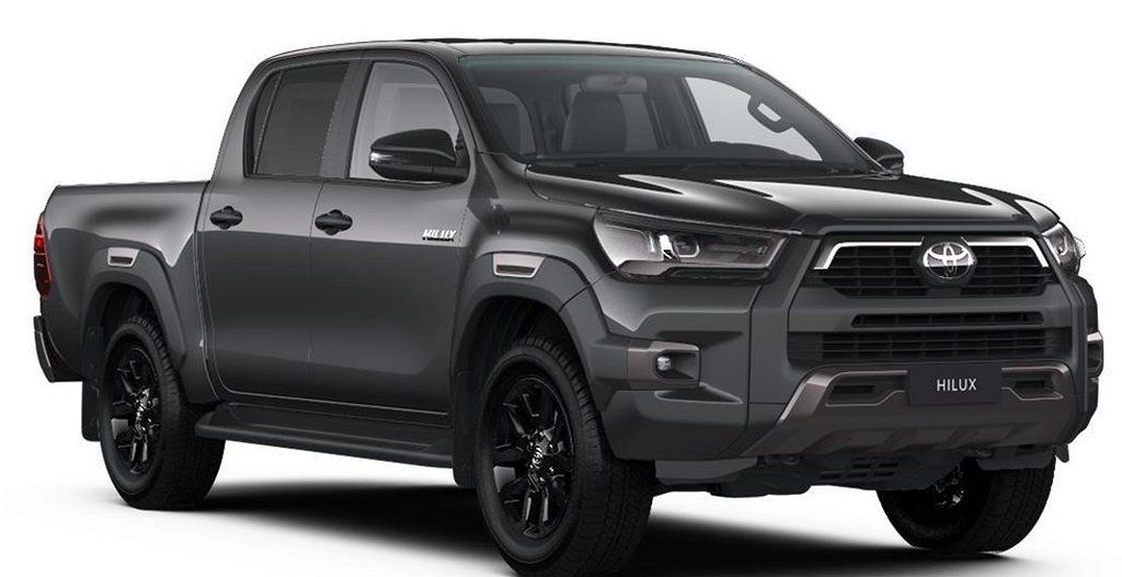 Inkommande Hilux lagerbilar, preliminärt leveransklara i februari 2025 . Finns i Black Mica Metallic eller Dark Grey Metallic. Ordinarie pris 524 000 kr ex moms. Kampanjpriset är inte kombinerbart med ramavtal. Leveranstiden vid fabriksbeställning av en ny Hilux är idag annars ca 1,5 år - först till kvarn!