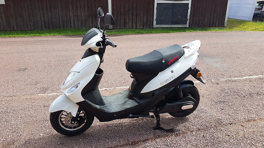 Viarelli Enzero el moped. En el moped som ligger rätt i pris 19900 kr Inklusive moms. Mopeden har tre hastighetslägen och tydlig display för elmätaren. Förvaringsutrymme under dynan. Räckvidd ca 6 mil. 2 KW /60 V 45 km 1 KW /60 V 25 km. Finns som körkortsfri 25 moped eller 45 km EU moped. Hjälm på köpet.