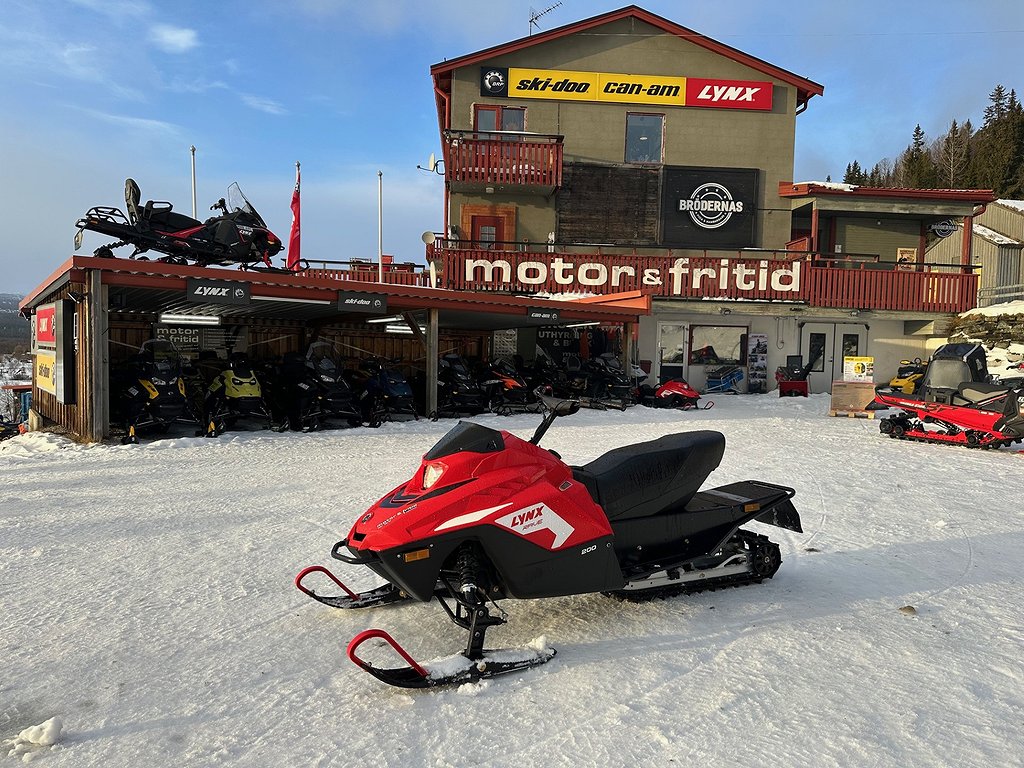 Rave 200 är en fullutrustad snöskoter i mindre storlek. Den ser ut och går precis som mammas och pappas skotrar, men med kraft och funktioner av lämplig storlek för unga förare att ge sig ut på äventyr runt stugan eller på bakgården.
