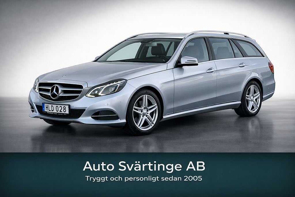 Mercedes E 220 T BlueTEC 9G-Tronic Avantgarde med dragkrok i mycket fint skick. Endast 2 privata brukare sedan ny och väl omhändertagen. Komfortabel och bränslesnål premiumkombi med 9-stegs automat och hög körkomfort. Fina sommar- och vinterdäck ingår. Mycket fint skick både invändigt och utvändigt.