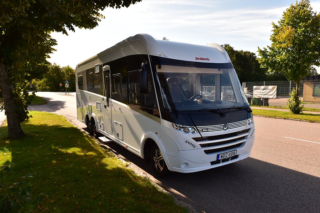 Helintegrerad husbil i premiumklassen. Fiat 2,3 mjt multijet turbodieselmotor på 177hk. 9vx wandler automatväxellåda. Mätarställning ca 1150mil. Euro 6 motor med grönt miljömärke. Aluminiumfälgar. Elektrisk 6m omnistor markis med fjärrkontroll. Elektriskt inställbara ytterspeglar. Elektrisk fönsterhiss på förardörren. Dethleffs navireciever med stor skärm, GPS och backkamera. Automatisk a/c i förarhytten. Ratt med radioreglage. Dubbla airbags. SKA luftfjädrade stolar i förarhytten. Elektrisk mörkläggningsgardin i förarrutan. Trädekor; Almeria Ash. Klädsel Bozen. Booster 25A. Solcell. EP hydrauliska stödben. Utrustad med det stora Premiumpaketet. Langetterad mattor.