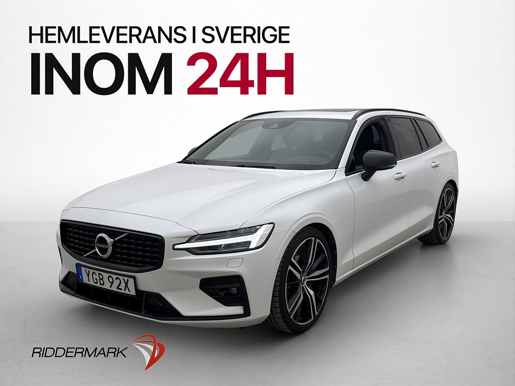 Leasbar MOMS,R-Design,Panoramaglastak,Harman/Kardon Ljudsystem,Head Up Display,Volvo On Call,Parkeringsvärmare,Backkamera,Navigation,Skinn/tygklädsel,Elstol med minne förare,Dynförlängare,BLIS: Döda Vinkel Varnare,Apple CarPlay,Android Auto,Rattvärme,Multifunktionsratt,Adaptiv farthållare,Lane assist,ACC/Klimatanläggning,Sätesvärme fram/bak,Elhissar fram/bak,Isofix fästen bak ,12V-uttag,AC och klimatanläggning,Motorvärmare,Soltak/glastak,Svensksåld