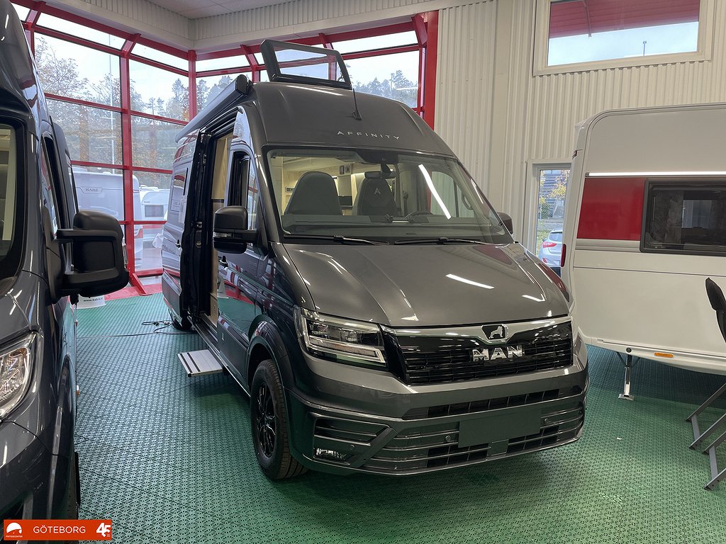 Bekväm compact husbil för två personer. Praktisk köksdel med vändbara pilotfotöljer., Gott om garderober och ett rymligt badrum med separat dusch. Truma Combi 4E värmesystem med gasoldrift-eldrift 200l Färskvattentank 100l Gråvattentank 12v fläkt i kök och badrum Välkommen till oss på Fritidscenter i Göteborg för en titt på denna fina plåtis med MAN chassi.