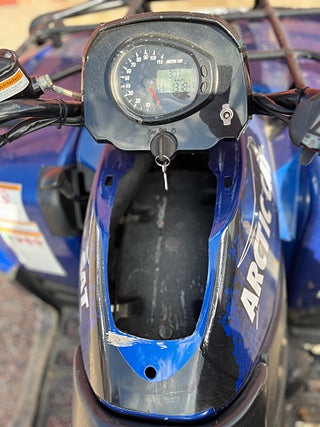 regnr: LBG150 Årsmodell 2011 Knappen till 2wd och 4wd sitter fast, plast och sadel skadad med lim pga skadegörelse, plastkåpa saknas fram över motor