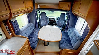 Hjuldrift: Framhjulsdrift, Märke chassi: Fiat Ducato, Vid köp av begagnad husbil hos oss ingår: Stor bodelsservice - Provtryckning av gasolsystem - Fukttest med protokoll - Motorservice - Kamremsbyte om erforderligt - Besiktning om erforderligt - Invändig städning - Utvändig tvätt - Demonstration av fordonet på leveransdagen - Garantier (gäller ej nivå- och tempgivare) - Utrustning inom parentes = Kontrolleras inte kan vara ur funktion och ingen garanti lämnas - Ospecificerad utrustning medföljer fordon utan garanti - Tjänstevikten kan påverkas av extrautrustning - Förmånlig finansiering - Gäller om inget annat avtalas