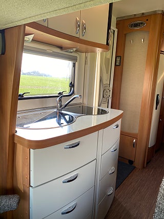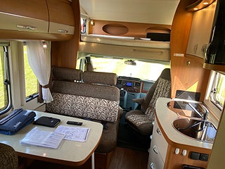 Hobby A 600 KM -12. Mycket fin och välskött husbil med 6 bälten och 6 sovplatser. Fukt och gasoltsetad april 2026. Besiktigad tom 2027-04-30.