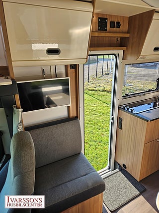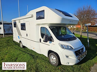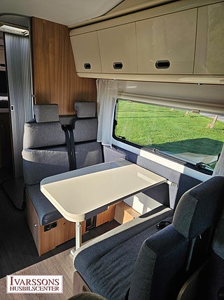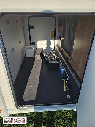 Modellår: 2019, Motor: Fiat Ducato 2.3 JTD, Värmesystem: Truma - luftburen fläktvärme, Försäkring: ca 5 000 kr/år, Truma - luftburen fläktvärme, Klimatanläggning - bildel, Stort kylskåp med separat frys, Fönster med mörkläggning/myggnät, Multimediaspelare med Backkamera, Lastluckor - dubbla till garage, Lastutrymme - stort garage, Elpatron 230V