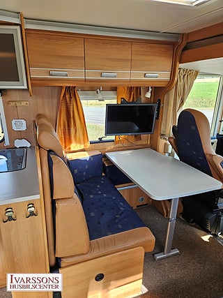 Modellår: 2008, Motor: Fiat Ducato 2.3 JTD, Värmesystem: Truma - luftburen fläktvärme, Försäkring: ca 5 000 kr/år, Truma - luftburen fläktvärme, Klimatanläggning - bildel, Stort kylskåp med separat frys, Fönster med mörkläggning/myggnät, Svensksåld