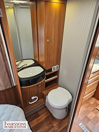 Modellår: 2013, Motor: Fiat Ducato 2.3 JTD, Värmesystem: ALDE - vattenburen centralvärme, Försäkring: ca 5 000 kr/år, ALDE - vattenburen centralvärme, Klimatanläggning - bildel, Stort kylskåp med separat frys, Multimediaspelare med Backkamera, Lastluckor - dubbla till garage, Lastutrymme - stort garage, Fönster med mörkläggning/myggnät, Dubbelgolv med invändig lucka