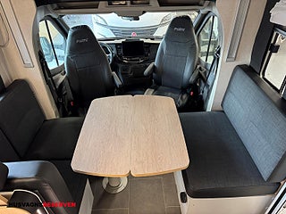 Modellår: 2026, Karosstyp: Halvintegrerad med taksäng, Värmesystem: Truma Diesel - luftburen fläktvärme, Automatisk växellåda (8 vxl), Centrallås bil- och bodelsdörrar, farthållare med trafikskyltsigenkänning för att automatiskt justera hastigheten till den aktuella gränsen på vägen, Automatisk Klima ACC i bildelen, Stort kylskåp med separat frys, Färskvattentank - frysskyddad, Spillvattentank - frysskyddad, Multimediaspelare med Backkamera och Navigation, 16 tums svarta aluminiumfälgar, El-fotsteg till bodeldörr, Stort garage med lastluckor från båda sidor, Truma Combi 6DE Dieselvärmare med elaptron, Förvaringslåda utdragbar i sidan på bilen, Automatisk gasolomkopplare, Klädhängare i tak på toalett, 8 tums digitala instrument fram i förarhytten, 12 tums pekskärm för stereo mm, 5 g modem i bilen Ford Wifi hotspot ready, Automatic Emergency Braking to reduce direct frontal collision impact, Parkeringshjälp backkamera bak och parkeringssensorer fram, Camper assist garanti via Ford, Handsfree-set och rattreglage