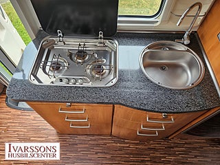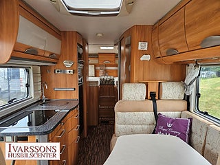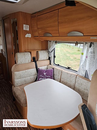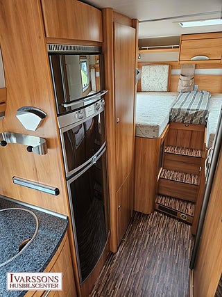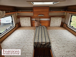 Modellår: 2007, Motor: Mercedes-Benz 3.0 V6 CDI, Värmesystem: Truma - luftburen fläktvärme, Försäkring: ca 5 000 kr/år, Centrallås bil- och bodelsdörrar, Instrumentpanel med trädekor, Truma - luftburen fläktvärme, Klimatanläggning - bildel, Stort kylskåp med separat frys, Extra bäddyna mellan långbäddar, Fönster med mörkläggning/myggnät, Multimediaspelare med Backkamera, Lastluckor - dubbla till garage, Lastutrymme - stort garage, Taklucka Mini-Heki