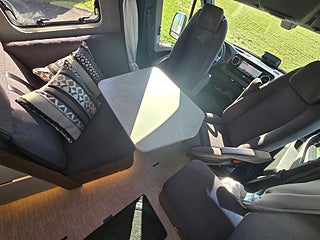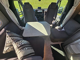- Komfort-L-sittgrupp med lounge-dynor bord skjutbart i längd- och sidled samt 2 integrerade 3-punktsbälten
