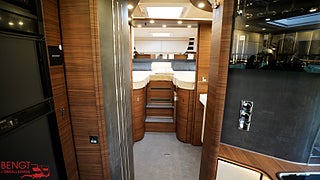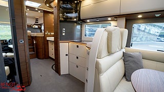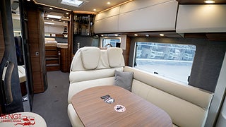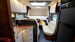 Hjuldrift: Framhjulsdrift, Klädsel: Läder Pearl // Cortina, Märke chassi: Mercedes Benz Sprinter, 1:2 Superpaket MB: inkluderar: Semiautomatisk klimatanläggning Tempmatic, Farthållare Laddningsbooster, Framaxel med ökad lastkapacite, Läderratt med tillvalet multifunktionsknappar (vid manuell växellåda inkl. läderväxelspak), Kombiinstrument med färgdisplayRegnsensor, Förarhyttens stolar med inställbar lutning och höjd (fram/bak)Manuella stödben för bekvämare boende, 2" multimedia inkl. navigering och DAB+, Vägmärkesassistent Busspeglar ?Carthago bestview? med instegsbelysning, elektriskt inställnings- och uppvärmningsbara, XL-entrédörr ?premium two 2.0? (bredd 6, 2:2 Superpaket MB: inkluderar: Centrallåsning förarhyttsdörrar och entrédörr, med funktionen ?coming home?, Mopedgarageinredning med nålfiltmatta, SOG-toalettventilation ovanför taket, Designbarskåp med glashållare och glasuppsättning över kök, USB-uttag i överskåp bakre säng, Förberedelse solcellsanläggning, Förberedelse för sat-anläggning, Förberedelse backkamera (enkelobj, Färskvattentank 170 liter, Spillvattentank 140 liter, Väggar klädda med mikrofibermaterial, Full-LED-strålkastare halv- och helljus, Aktiv uppmärksamhetsassistent, Träfri karosskonstruktion, Vägg- och taktjocklek 38 mm, Aguti Roadliner komfortstolar, Tjänsteviken kan påverkas av extrautrustning