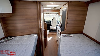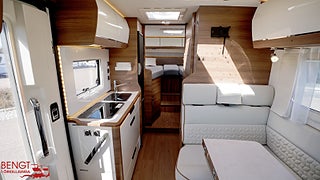 Hjuldrift: Framhjulsdrift, Klädsel: Palma // Nacarat, Märke chassi: Fiat Ducato, 3.5T (från 140 hk manuell 3, LOUNGE PACK : Automatisk AC i hytt, induktivladdning smartphone, TPMS (automatisk däcktrycksövervakning), Färskvattentank 20/110 lit, Uppv spillvattentank 90 lit, Panoramiskt soltak Skyview, Coming-home funktion m aut belysning, Elektrisk parkeringsbroms, Traction + m Hill Descent, Elbackspeglar m defroster, Multimedia DAB PIONEER 9'' skärm, Apple Carplay/Android Auto, Tjänstevikten kan påverkas av extrautrustning