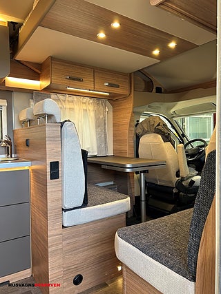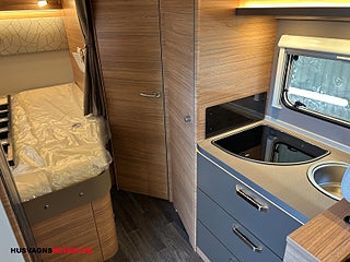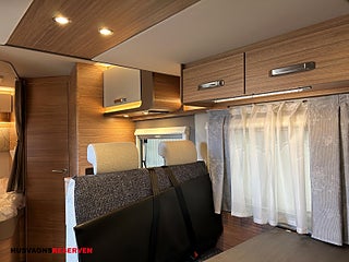 Modellår: 2026, Karosstyp: Halvintegrerad med taksäng, nedfällbar taksäng över sittgrupp, Bäddmått bak 201x133/103cm, Bäddmått fällsäng 196x142cm, Spillvattentank 95L (uppvärmningsbar), Alu fälgar med Allvädersdäck (snöflinga/alptopp), Gasolkoffert med plats för 2x11kg gasolflaskor, Luftvärme Truma Combi 6E (Gasol/230v), Markis (405x250cm)