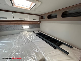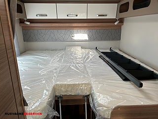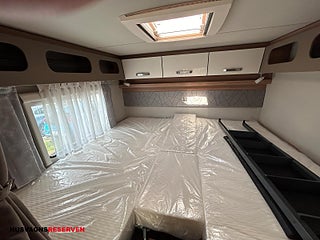 Modellår: 2024, Karosstyp: Halvintegrerad med taksäng, Långbäddar bak bäddmått 2x201x86cm, Nedfällbar taksäng bäddmått 192x140/120cm, Elektrisk parkeringsbroms, gasolkoffert med plats för 2st 11kg flaskor, Isolerad och uppvärmd spillvattentank, Markis