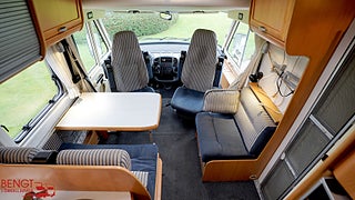 Hjuldrift: Framhjulsdrift, Märke chassi: Fiat Ducato, Vid köp av begagnad husbil hos oss ingår: Stor bodelsservice - Provtryckning av gasolsystem - Fukttest med protokoll - Motorservice - Kamremsbyte om erforderligt - Besiktning om erforderligt - Invändig städning - Utvändig tvätt - Demonstration av fordonet på leveransdagen - Garantier (gäller ej nivå- och tempgivare) - Utrustning inom parentes = Kontrolleras inte kan vara ur funktion och ingen garanti lämnas - Ospecificerad utrustning medföljer fordon utan garanti - Tjänstevikten kan påverkas av extrautrustning - Förmånlig finansiering - Gäller om inget annat avtalas