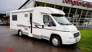 Hjuldrift: Framhjulsdrift, Märke chassi: Fiat Ducato, Vid köp av begagnad husbil hos oss ingår: Stor bodelsservice - Provtryckning av gasolsystem - Fukttest med protokoll - Motorservice - Kamremsbyte om erforderligt - Besiktning om erforderligt - Invändig städning - Utvändig tvätt - Demonstration av fordonet på leveransdagen - Garantier (gäller ej nivå- och tempgivare) - Utrustning inom parentes = Kontrolleras inte kan vara ur funktion och ingen garanti lämnas - Ospecificerad utrustning medföljer fordon utan garanti - Tjänstevikten kan påverkas av extrautrustning - Förmånlig finansiering - Gäller om inget annat avtalas