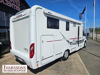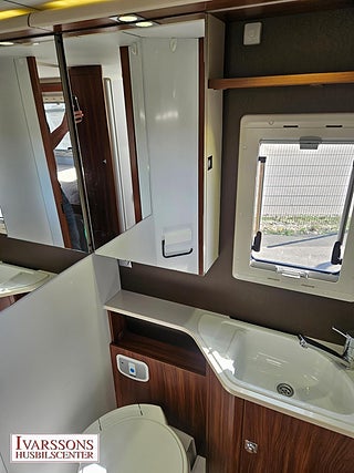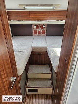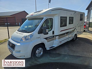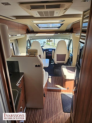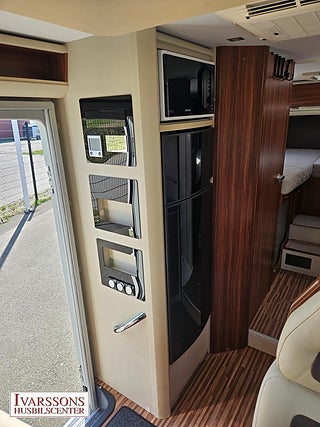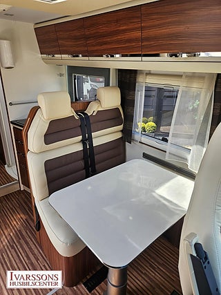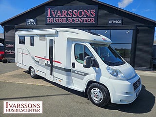 Modellår: 2014, Motor: Fiat Ducato 3.0 JTD, Karosstyp: Halvintegrerad, Värmesystem: ALDE - vattenburen centralvärme, Försäkring: ca 5 000 kr/år, Instrumentpanel med trädekor, ALDE - vattenburen centralvärme, Centrallås bil- och bodelsdörrar, Klimatanläggning - bildel, Värmeelement i hygienutrymmet, Stort kylskåp med separat frys, Extra bältesplats i sidosoffa, Extra bäddyna mellan långbäddar, Fönster med mörkläggning/myggnät, Multimediaspelare med Backkamera, Lastluckor - dubbla till garage, Lastutrymme - stort garage, Vinteranpassad