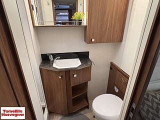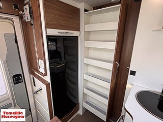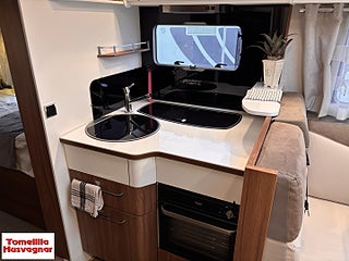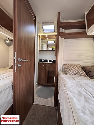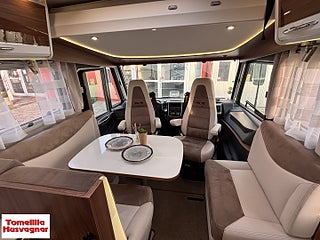 Hjuldrift: Framhjulsdrift, Fiat 2.3 MJ - 150 hk (109 KW), Långbäddar låga Långbäddar, Brandsäkra Heltäckningsmattor, Skjutdörr mellan kök & Sovrum, Nedsänkbar säng över förarhytt