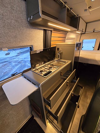 - Uppfällbart tak lackerat i fordonets färg (Maxi-dubbelsäng med komfort-sovsystem)