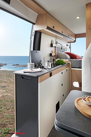 Modellår: 2026, Värmesystem: Truma Diesel - luftburen fläktvärme, Truma - luftburen fläktvärme (diesel), Expedition Grey utvändig kaross färg med lackerade stötfångare fram, 7 tums stereo med backkamera, Pop-up tak kan köpas till