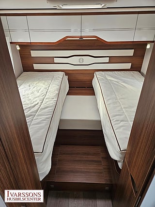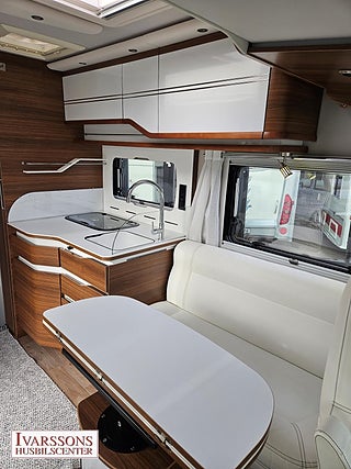 Modellår: 2017, Motor: Fiat Ducato 2.3 JTD, Värmesystem: ALDE - vattenburen centralvärme, Försäkring: ca 5 000 kr/år, Centrallås bil- och bodelsdörrar, Instrumentpanel med silverdekor, ALDE - vattenburen centralvärme, Klimatanläggning - bildel, Stort kylskåp med separat frys, Taksäng i hytt - elektrisk, Fönster med mörkläggning/myggnät, Färskvattentank - frysskyddad, Spillvattentank - frysskyddad, Multimediaspelare med Backkamera, Lastluckor - dubbla till garage, Vinteranpassad