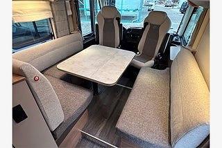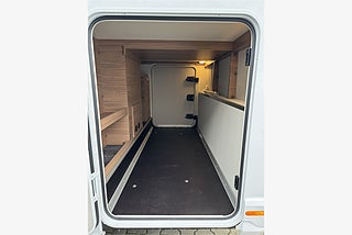 sidorutor, Full-LED frontbelysning (halv- hel- och blinkerslampor), Maximal lastförmåga i garaget, Elektriskt trappsteg vid entrédörr, Garagedörr 80 x 110 cm höger och vänster, L-formad sittgrupp med