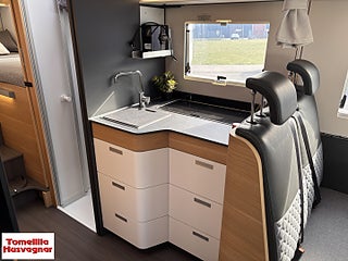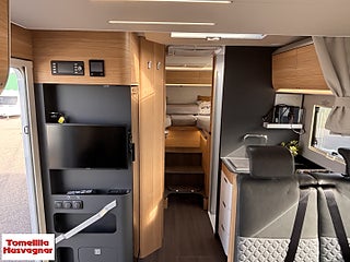 Integrerat Multimedia System, Traction +. Fiat MultiJet 140 Hk, Bäddbar mellan långbäddarna, Alde 3030 Vattenburen Värme, Elektrisk Gråvattentömning, Kyl & Frys drivs av Gasol & EL, Vatten & Batterinivåindikator