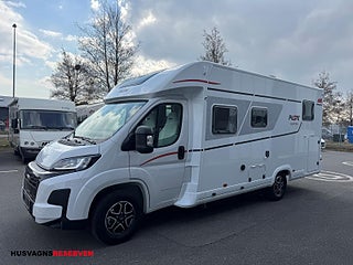 Modellår: 2026, Karosstyp: Halvintegrerad med taksäng, Åretruntdäck (med snöflinga), 7-TUMSPAKET: 7-tums Pioneer bilradio, Apple Carplay/Android Auto, högtalare i hytt och boendedel, Belysning och 230V uttag i garage, Anpassade sängkläder (sovrum), Dusch i garage